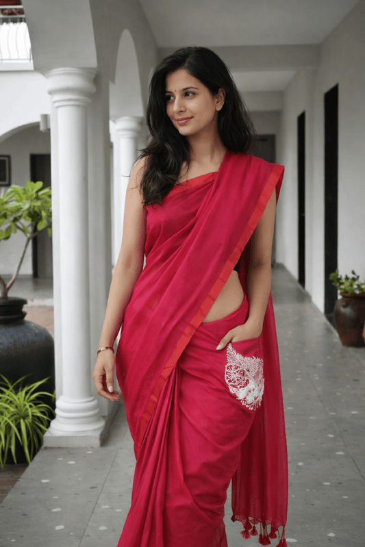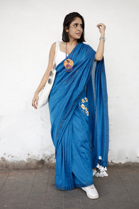 Rhythmic Bloom – Embroidery Pocket Saree