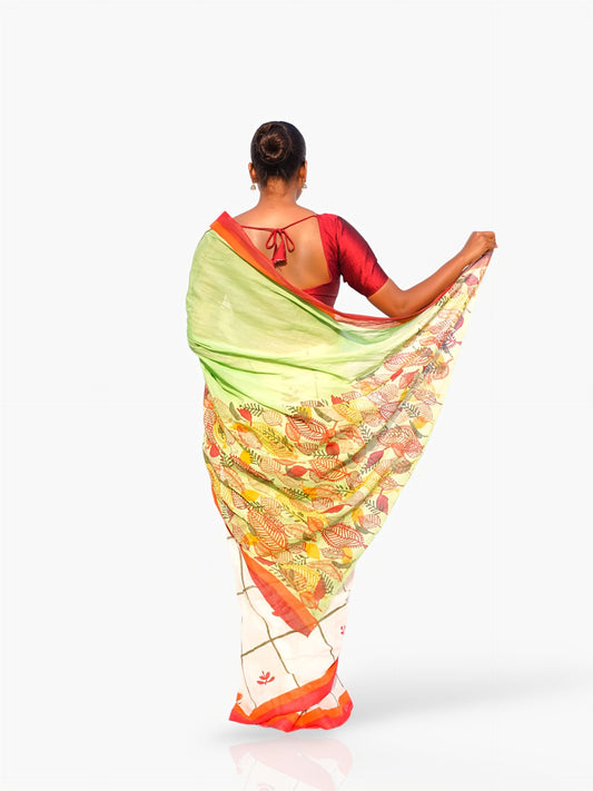 Song of Spring – Hand Block Mulmul Saree