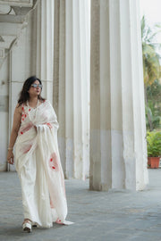 Graceful, grounded, and quietly striking — this off-white ensemble features all-over Kantha embroidery interwoven with delicate fish motifs, turning age-old craft into contemporary elegance. The intricate threadwork adds depth and movement, while the minimal color palette keeps it timeless and versatile.